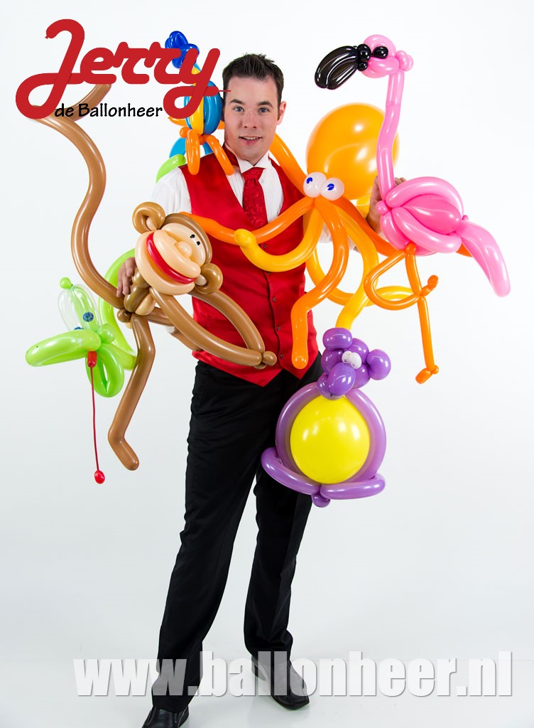 Jerry is geen standaard ballonnenclown, of eerlijk gezegd: geen clown maar een waar ballonartiest. Jerry de Ballonheer maakt in een handomdraai kunstige creaties van ballonnen met flair en veel interactie.